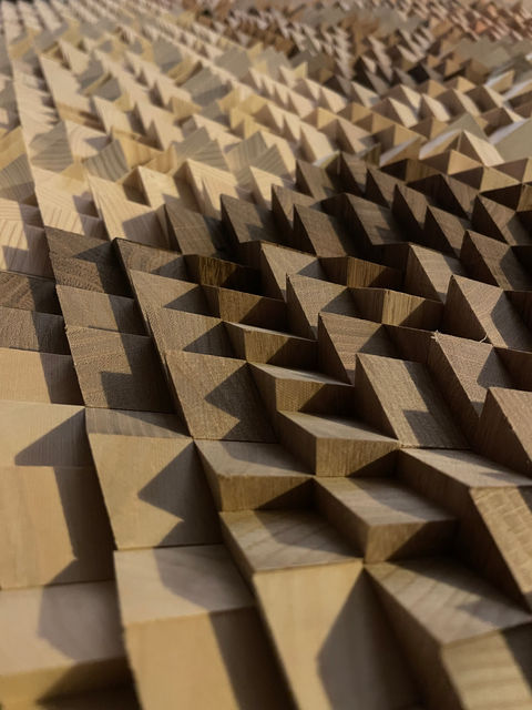 Pixel artiste, je crée des pièces uniques, issues de collages de papier, d'aplats d'acrylique, de répétitions de tampon à l'encre de Chine ou encore d'assemblages de pièces de bois ou de plastique. Mes œuvres esthétiques et fortes de sens, raviront les amateurs de fresques mosaïques et les personnes sensibles aux questions climatiques et aux sujets de société.